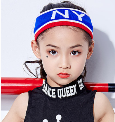 新款日韩小孩嘻哈街舞男女童少儿毛线针织发带个性儿童宝蓝字母细发带