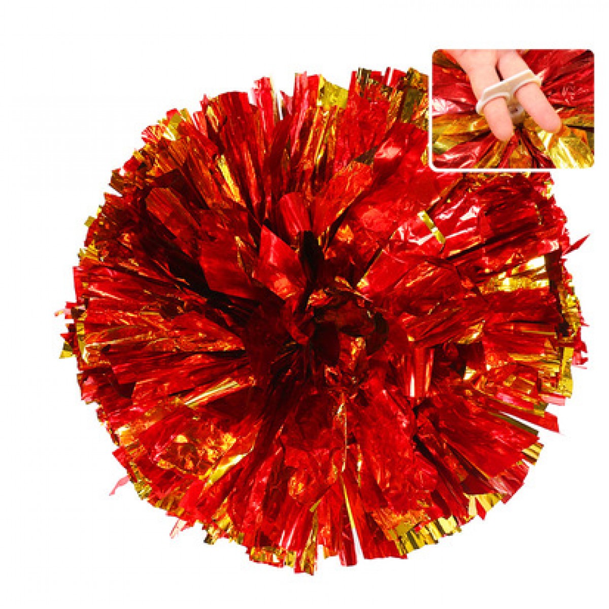 啦啦操花球拉拉队手花手摇花舞蹈表演出手拿花运动会道具手持彩球指环加密款 红+金30CM
