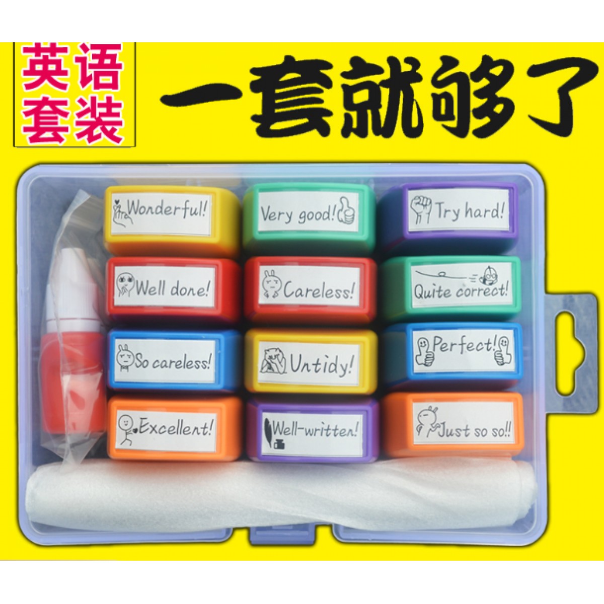 商品名称:英语老师作业批改评语印章长条版套装Perfect!good!Excellent!