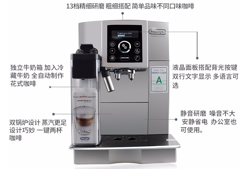 商品名称:德龙(DeLonghi) ECAM23.460.S 全自动咖啡机 意式家用商用咖啡机蒸汽式自动打奶泡豆粉两用