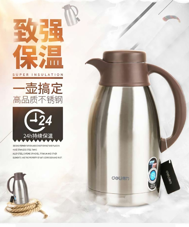 商品名称:得力8966保温壶1.5l不锈钢内胆(本色)