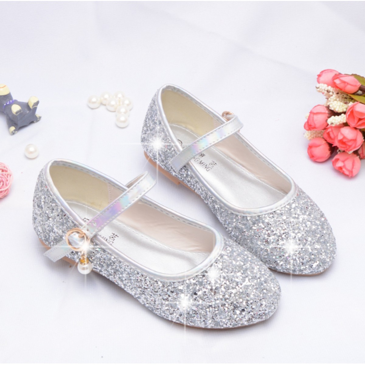 商品名称:儿童平底秋鞋小公主软底鞋银色亮片女童舞蹈单鞋