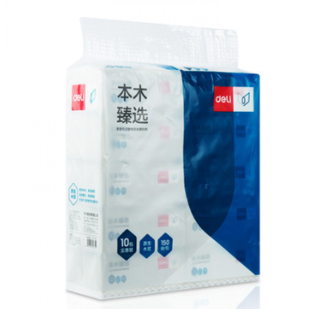 商品名称:得力MR2150-01全木浆抽取纸2层纸巾150抽/包 10包/提