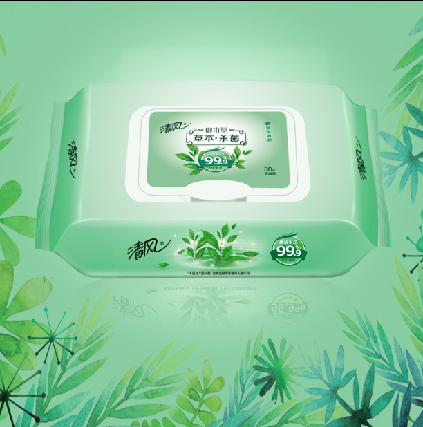 商品名称:清风草本杀菌湿巾 80片/包(绿色)包