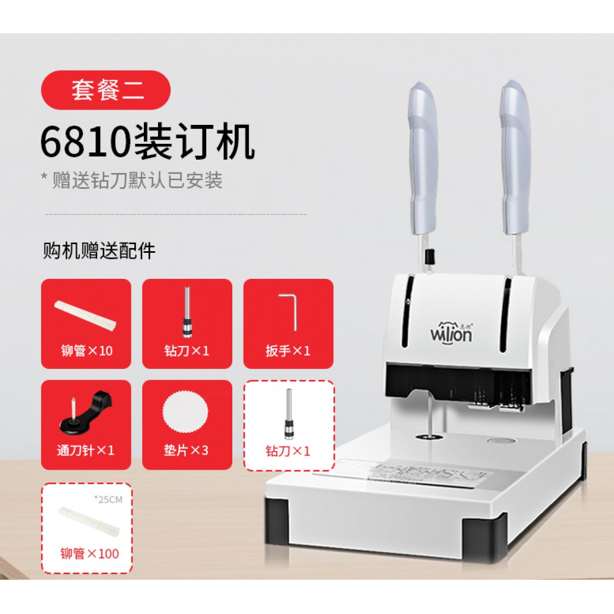 惠朗6810凭证装订机(柳管100支+25cm钻刀1)
