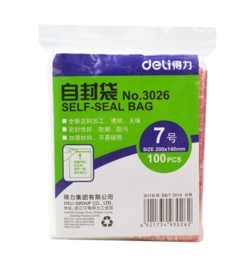 得力(deli)3026 自封袋7# 200*140mm 100个/包
