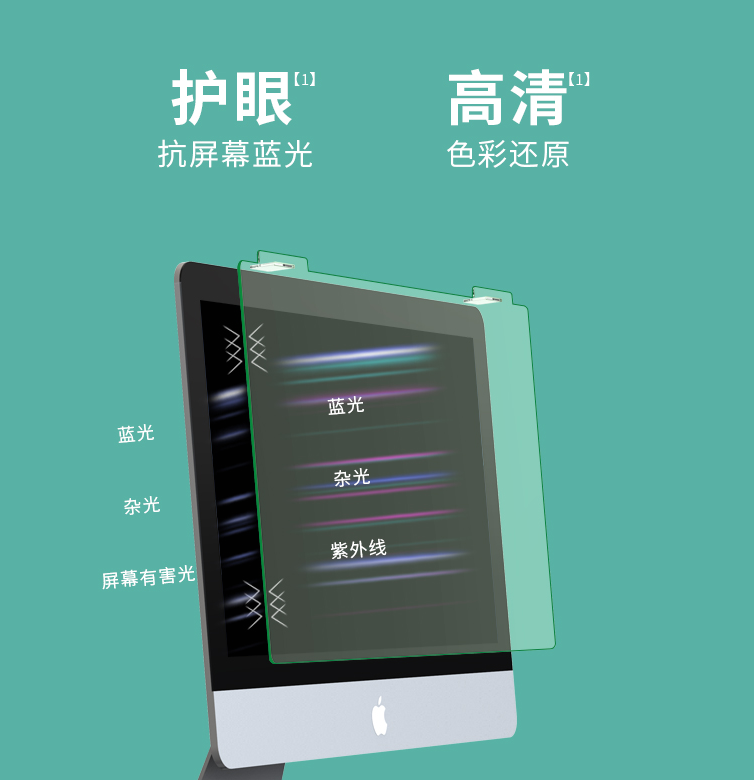 商品名称:电脑防辐射免贴护眼绿光润眼屏幕罩 23英寸16.9(524*306mm)护眼防辐射+送蓝光检测仪