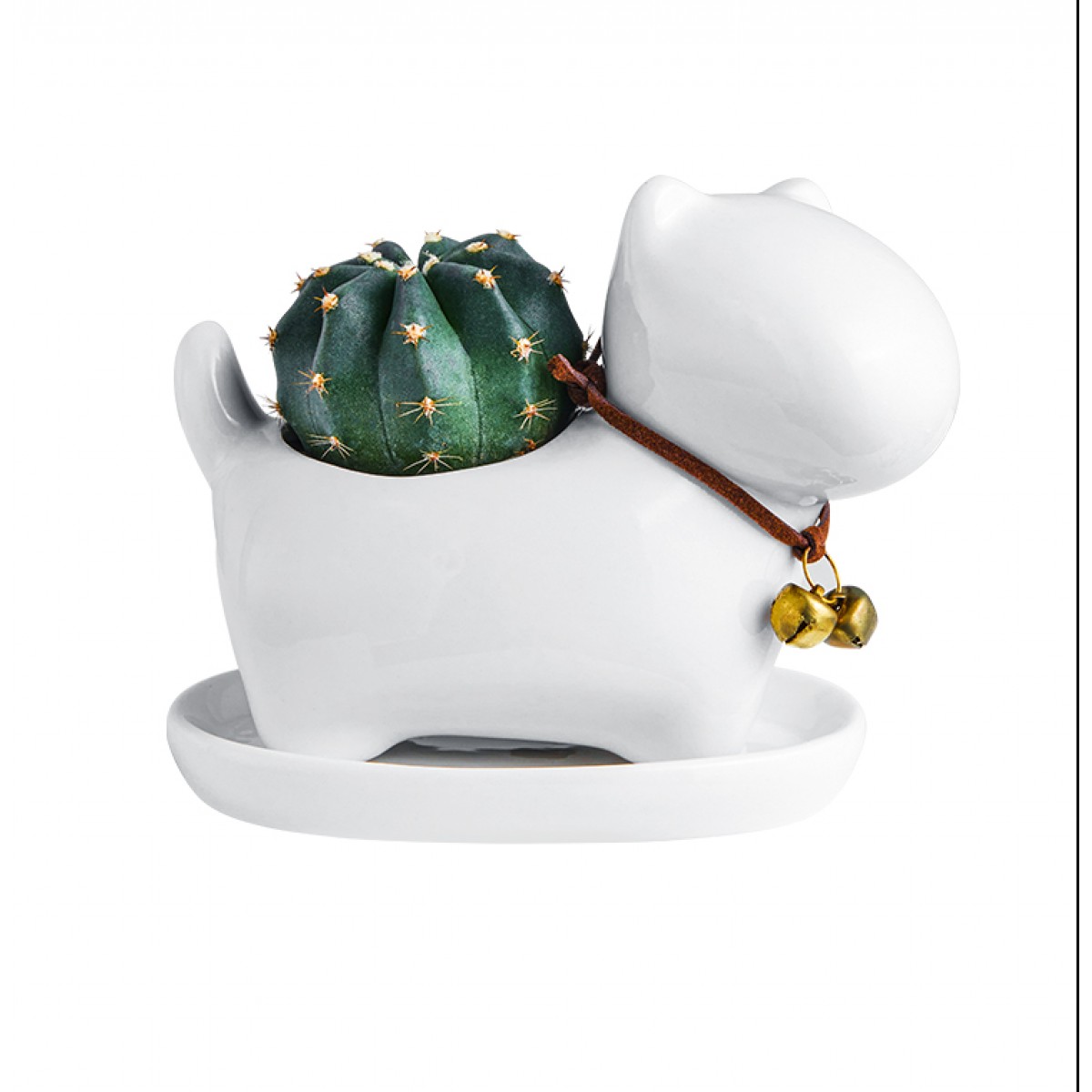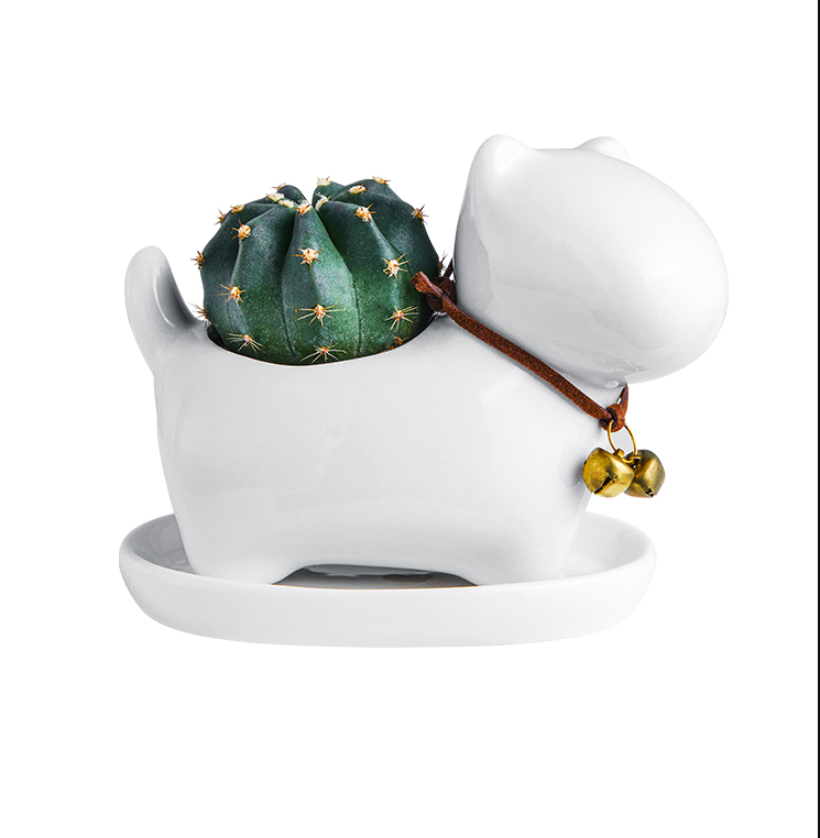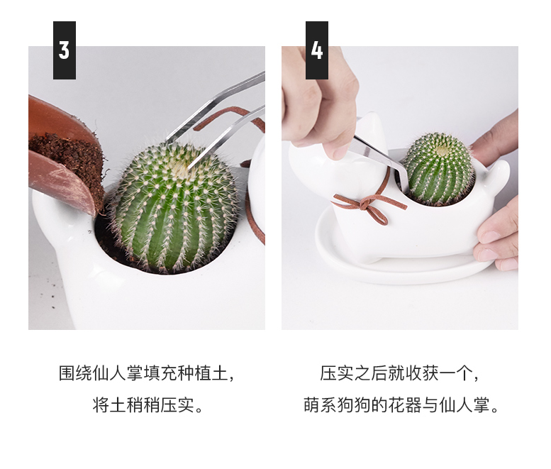商品名称:仙人掌盆栽 (狗狗白瓷盆仙人球)