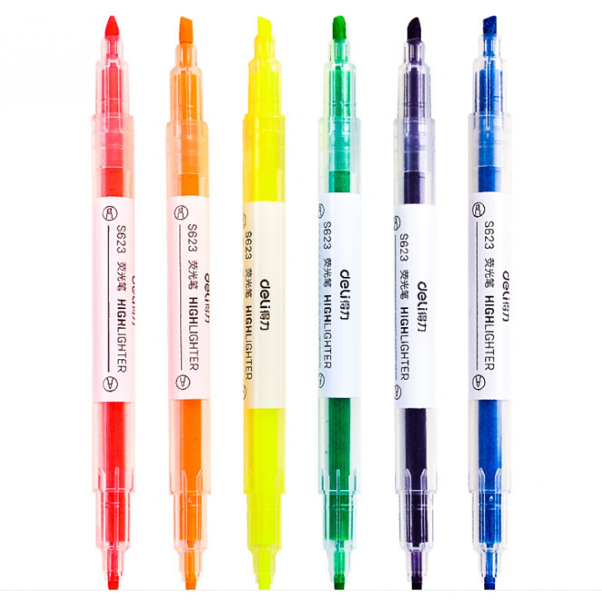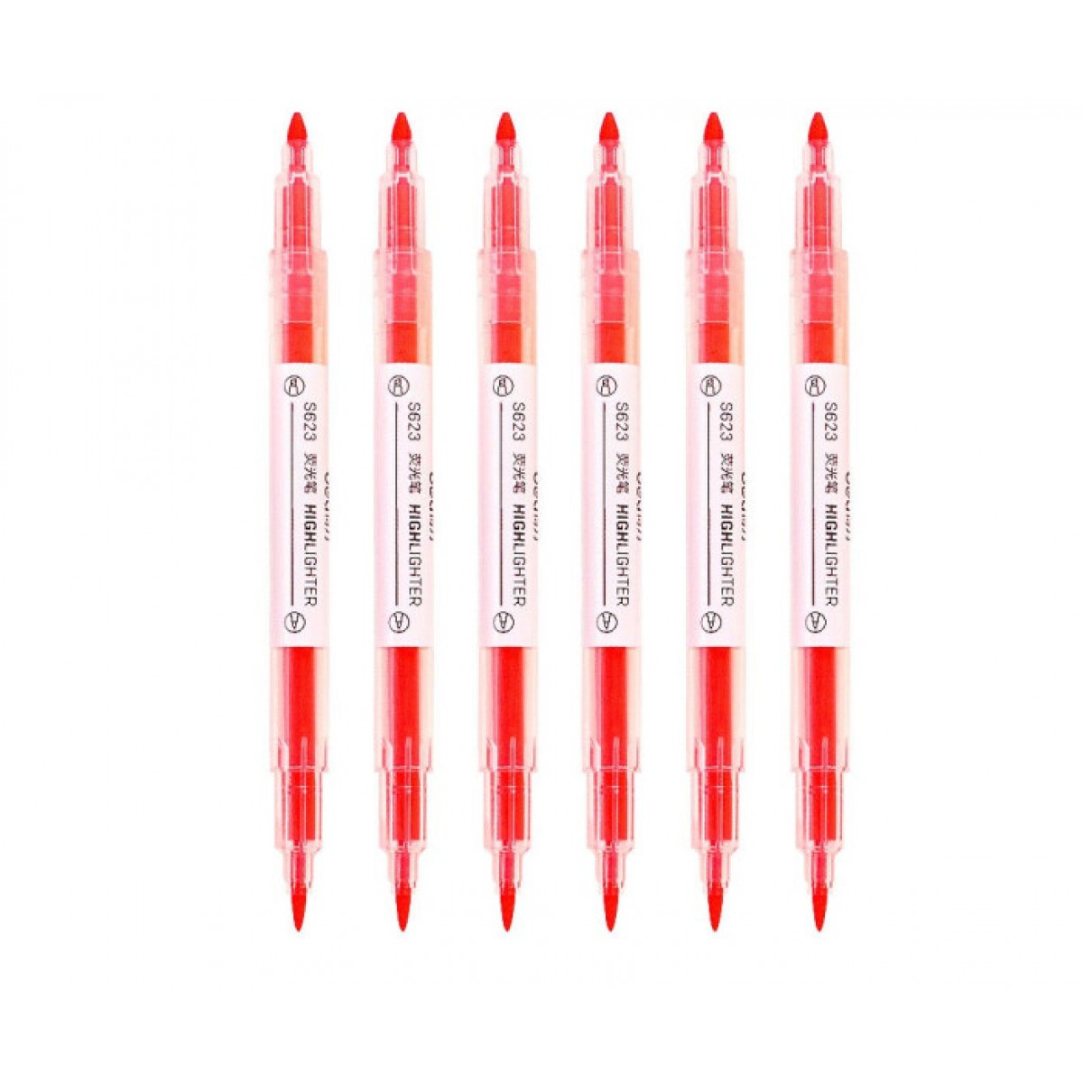 得力S623双头荧光笔标记笔学生用6支/盒 红色