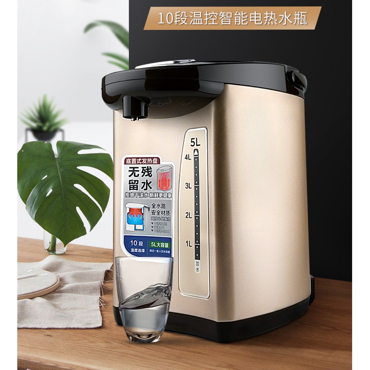 商品名称:美的PF709-50T电热水壶304不锈钢多段温控烧水自动出水5L大容量