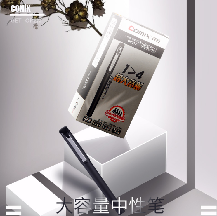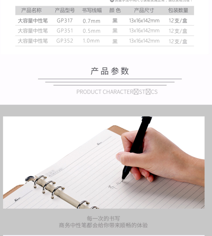 商品名称:齐心GP317大容量商务签字笔0.7mm黑色12支/盒