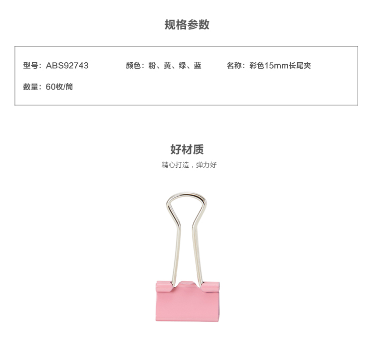 商品名称:晨光ABS92743 长尾夹彩色615mm 60枚/筒