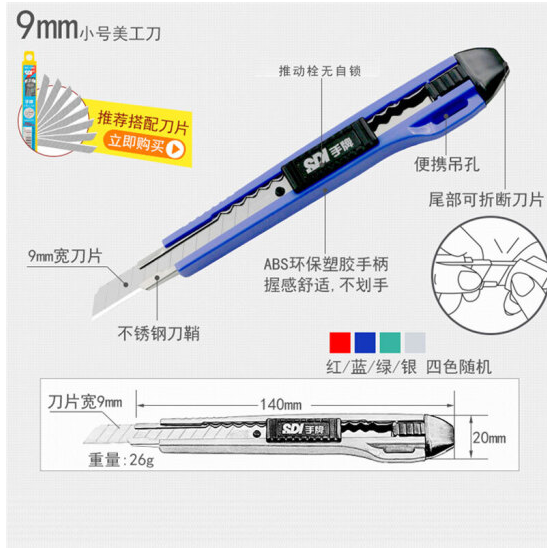 商品名称:手牌0404d美工刀 小号 9mm 混色 单位:把