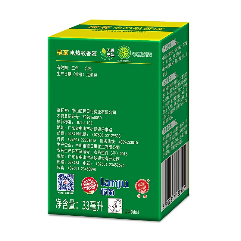 商品名称:榄菊电热蚊香液无味扁瓶33ml/瓶(单位:瓶)