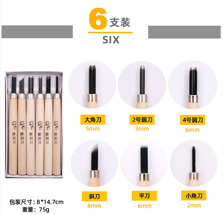商品名称:啄木鸟木刻刀套装6支装(单位:套)