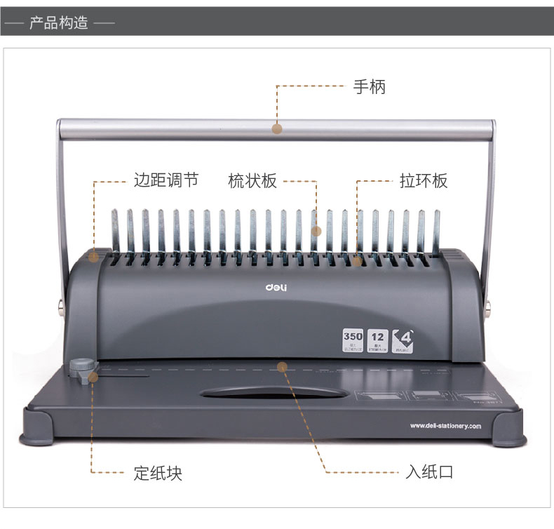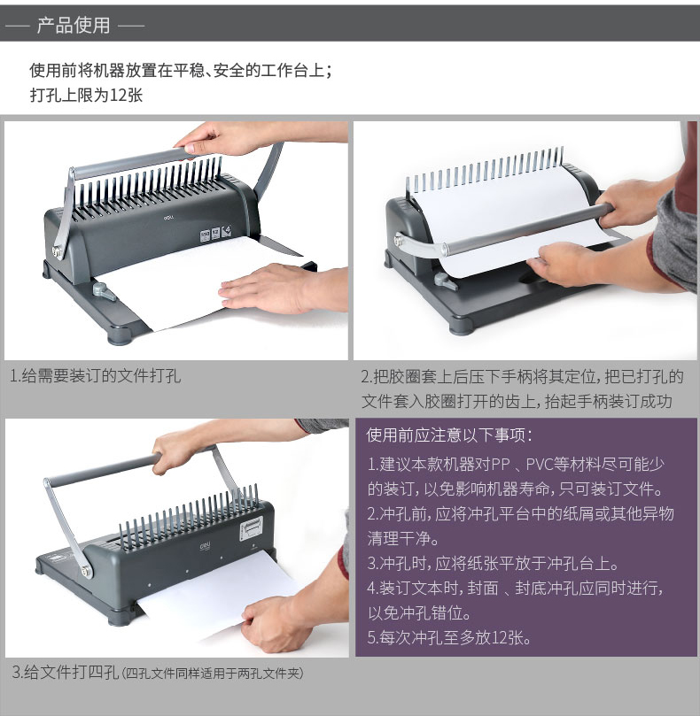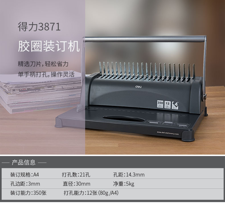 商品名称:得力3871胶圈夹条装订机黑色(单位:台)