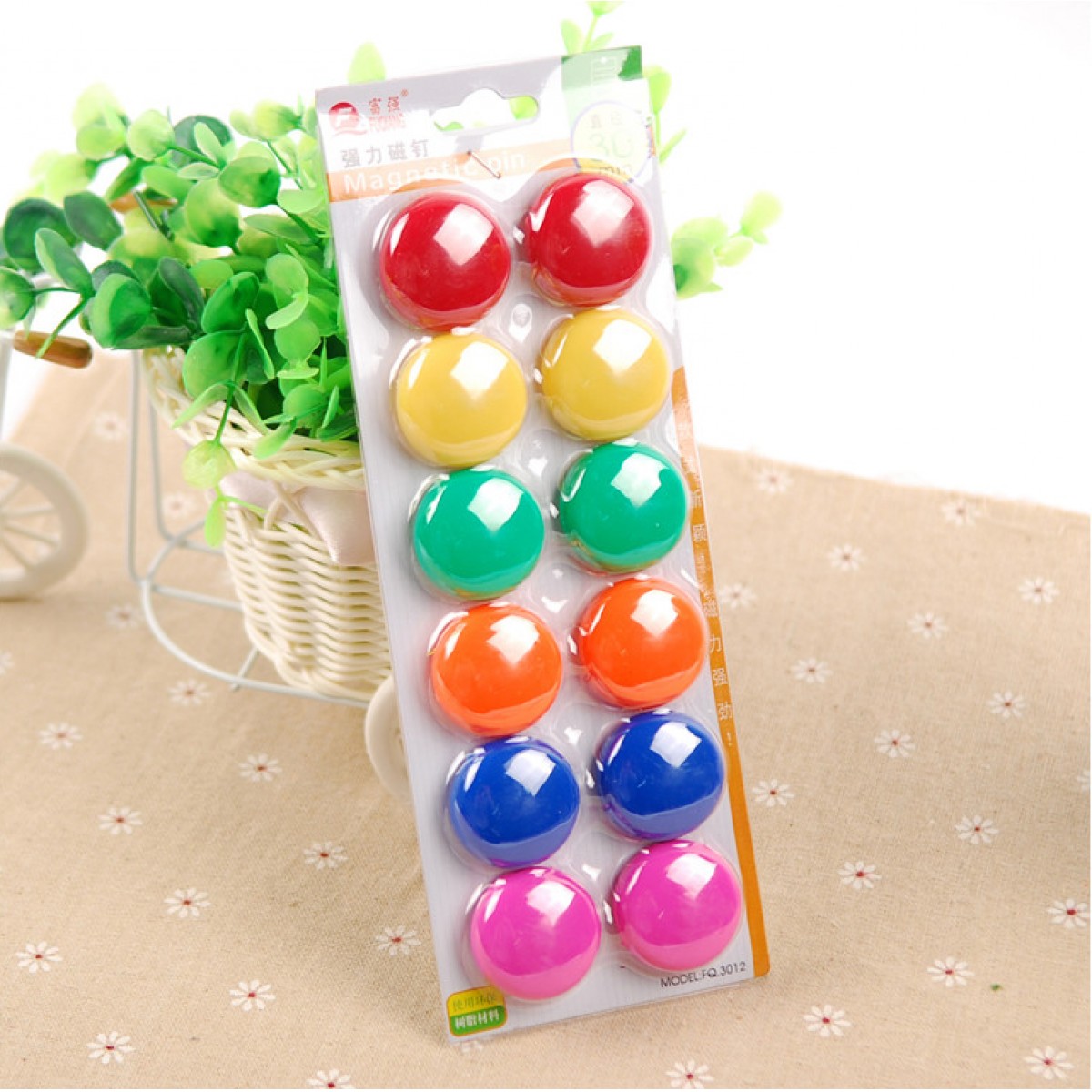 富强 FQ3012小号磁性白板钉磁粒3cm12粒装圆型磁钉×混色
