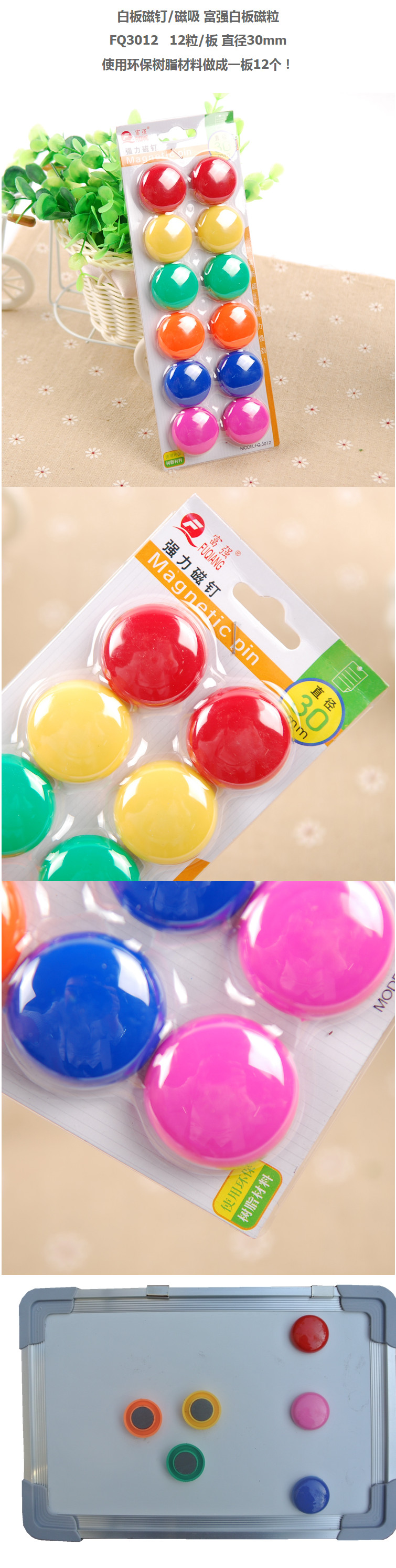 商品名称:富强 FQ3012中号磁性白板钉磁粒3cm12粒装圆型磁钉×混色(单位:卡)