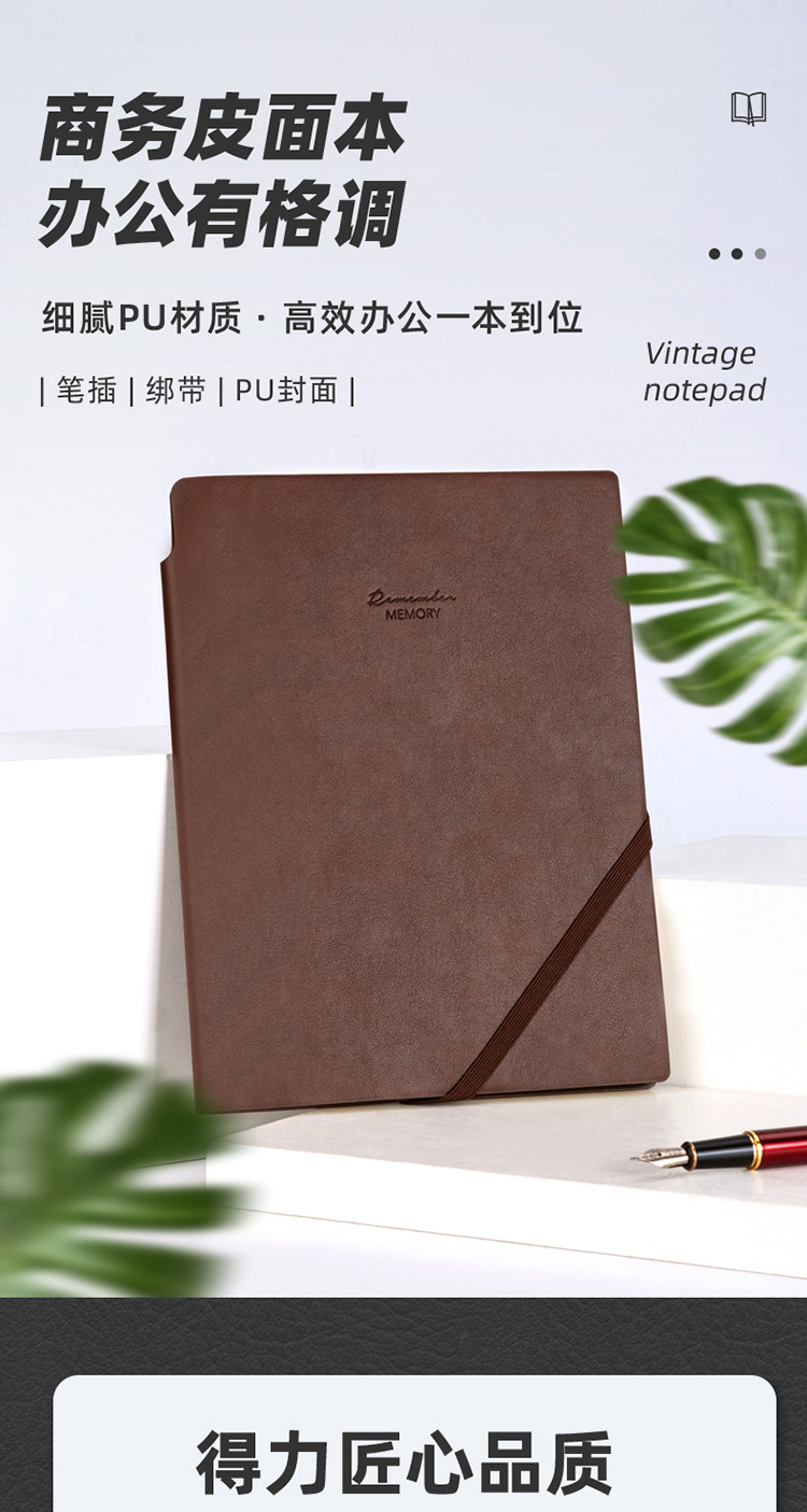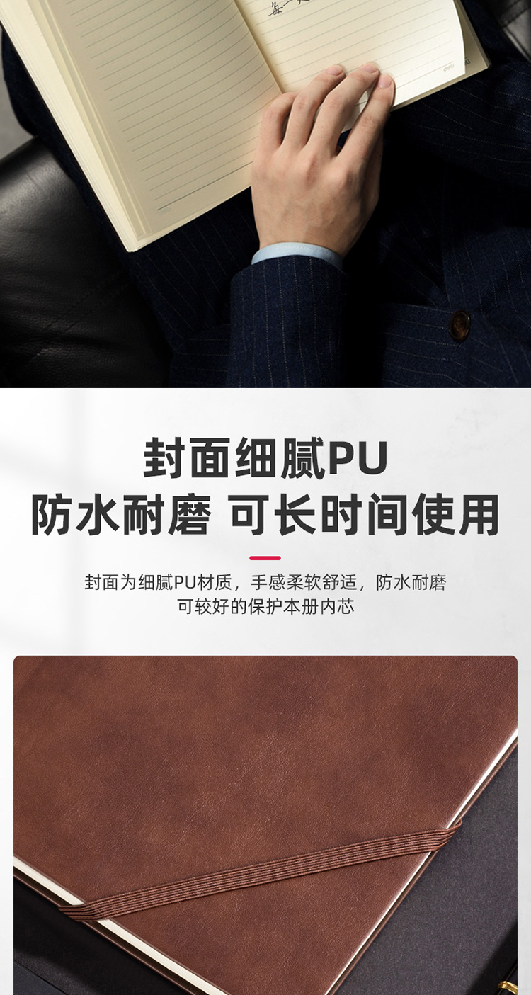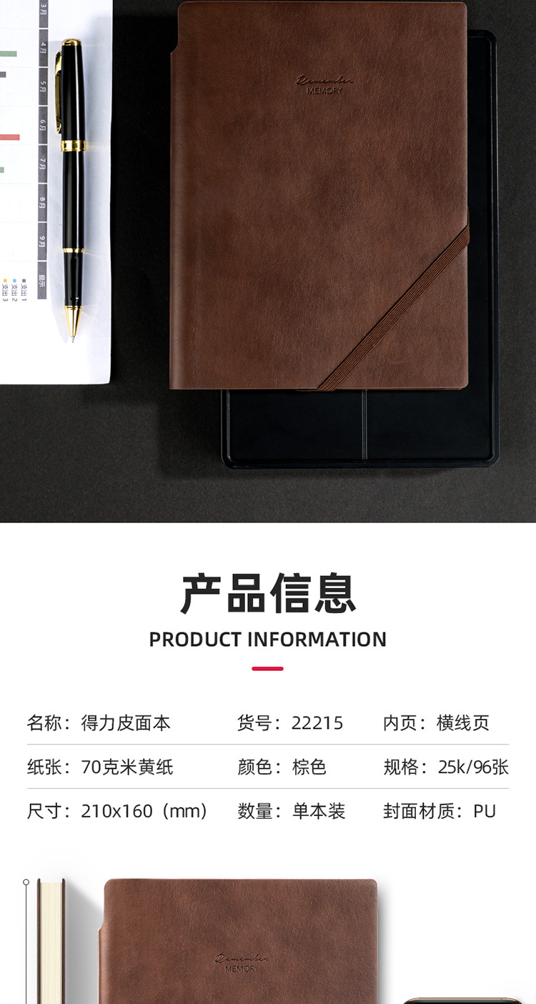 商品名称:得力22215可插笔绑带皮面本25K96张 棕色(单位:本)