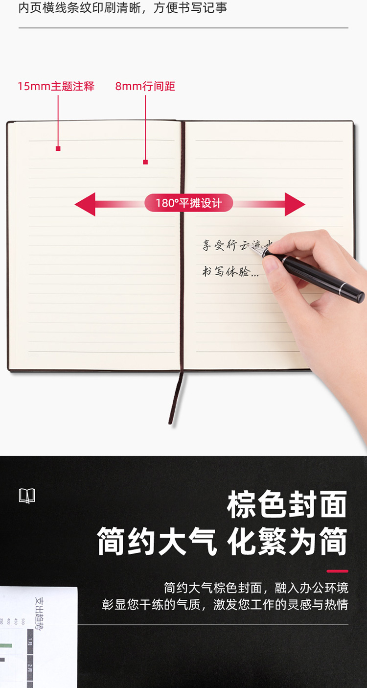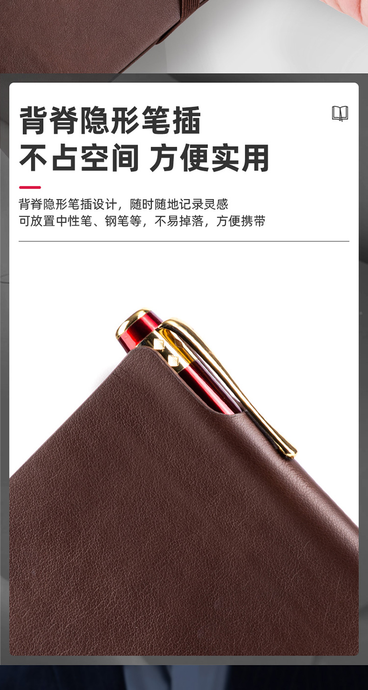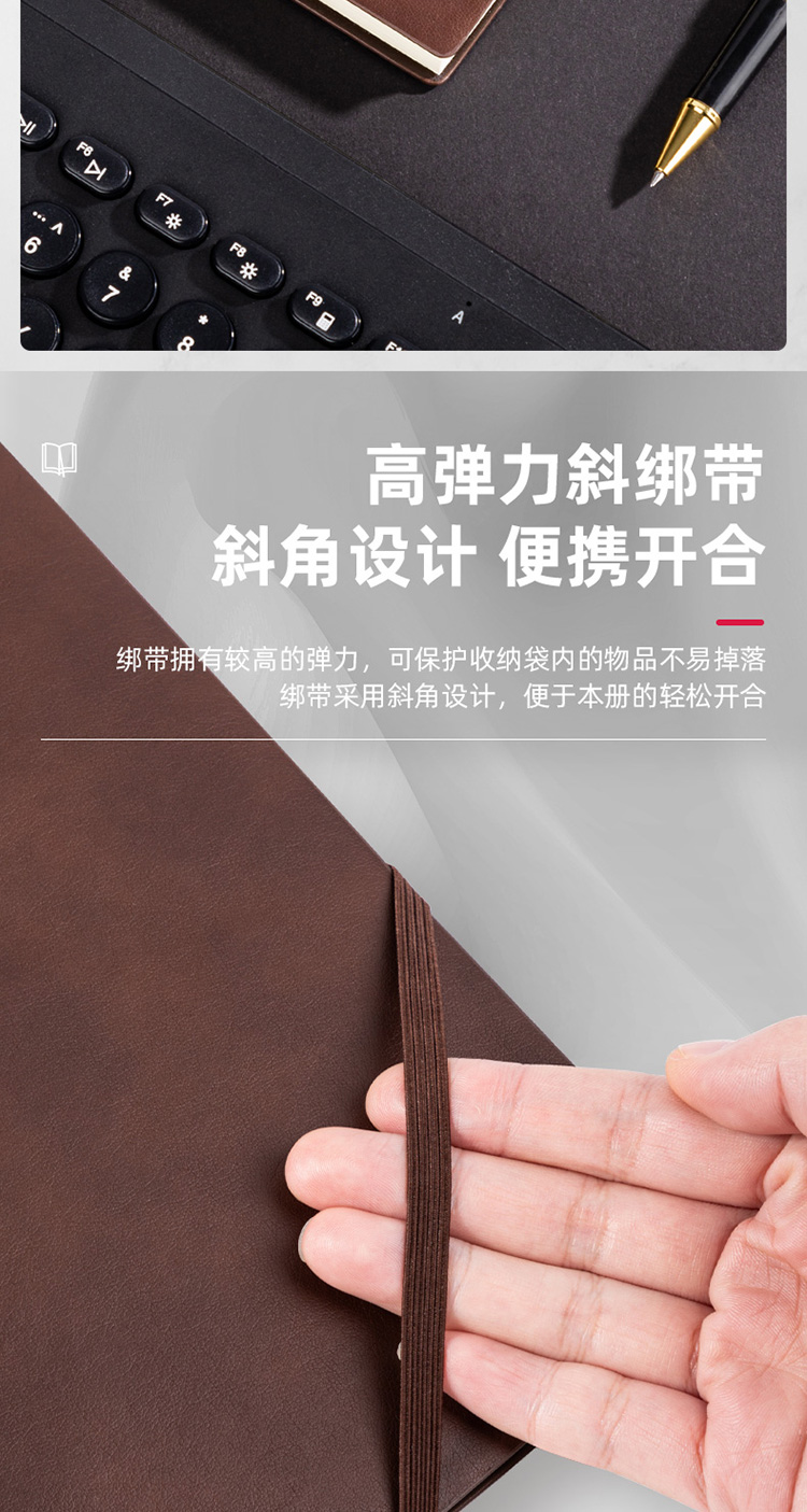 商品名称:得力22215可插笔绑带皮面本25K96张 棕色(单位:本)