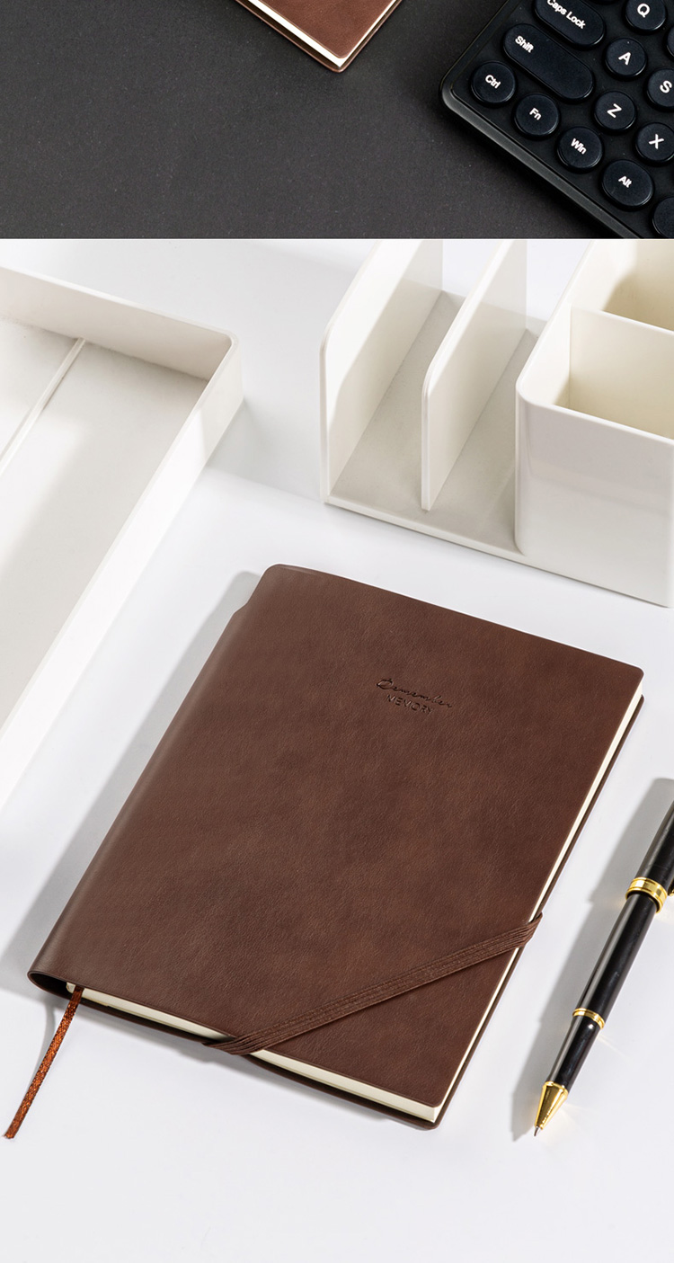 得力22215可插笔绑带皮面本25K96张 棕色(单位:本)