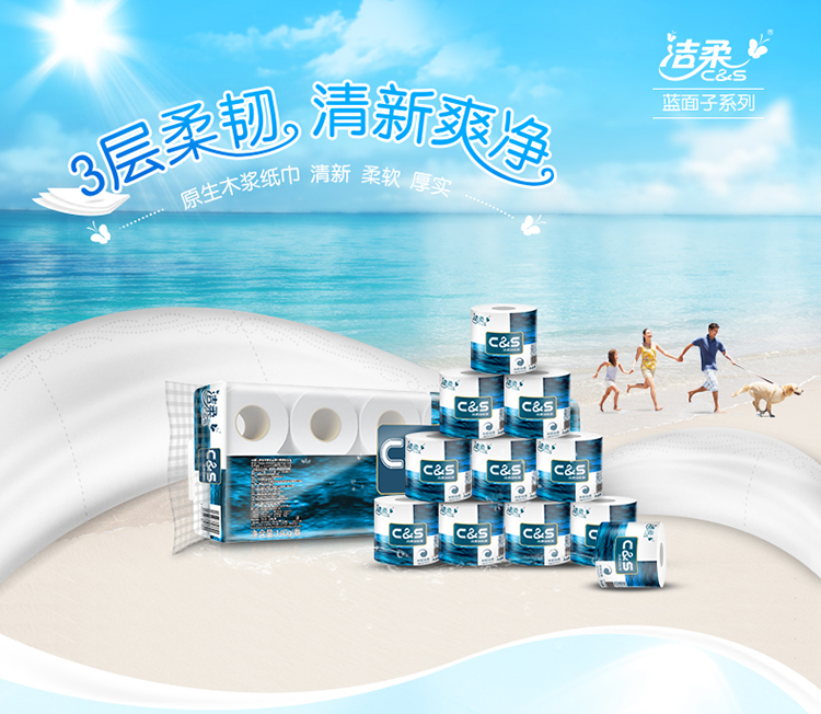 洁柔JJ041三层蓝面子卫生卷纸12卷/提 (单位:提)