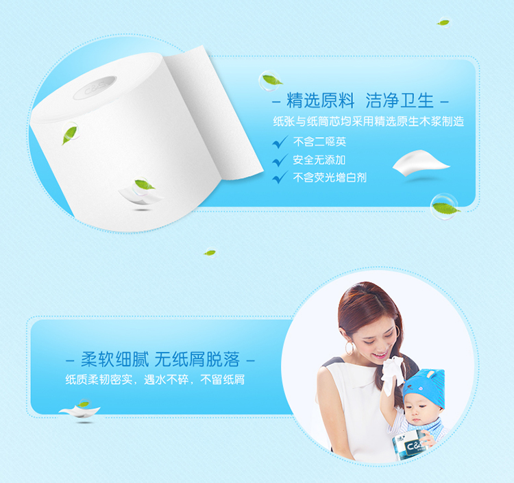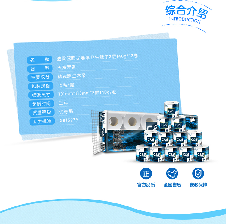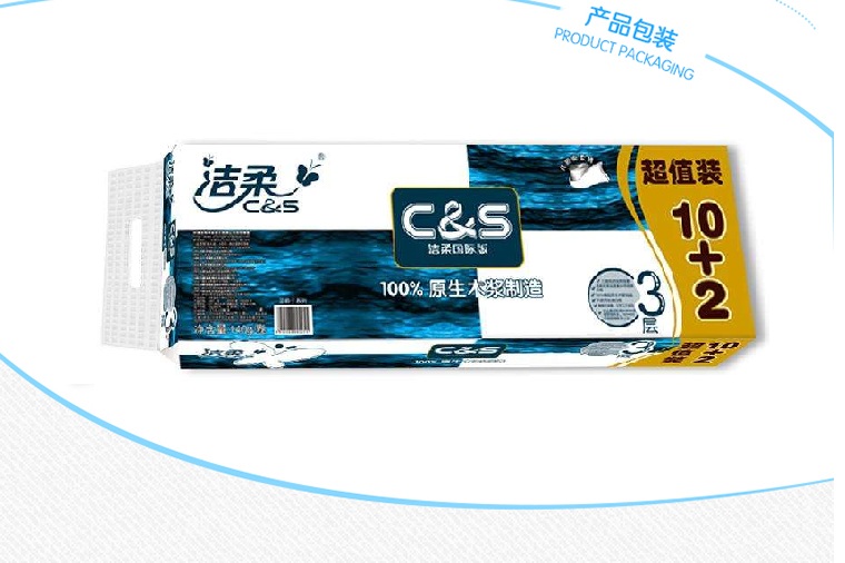 洁柔JJ041三层蓝面子卫生卷纸12卷/提