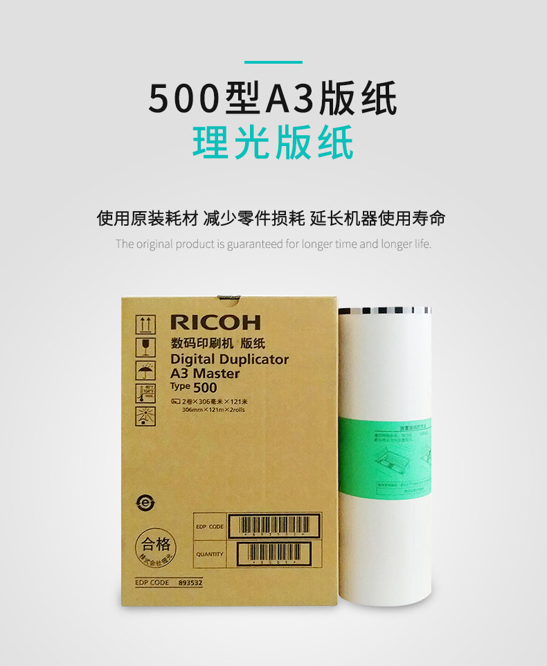 理光原装500型(122m/卷*2卷)A3版纸适用DD5450C(单位:箱)