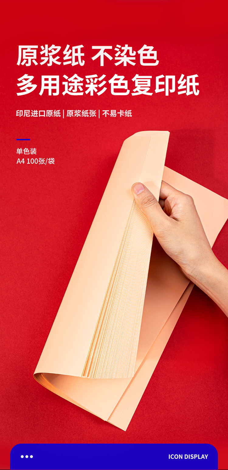 商品名称:得力7757彩色复印纸 A4 80g 100张/包 桃红色 单位:包