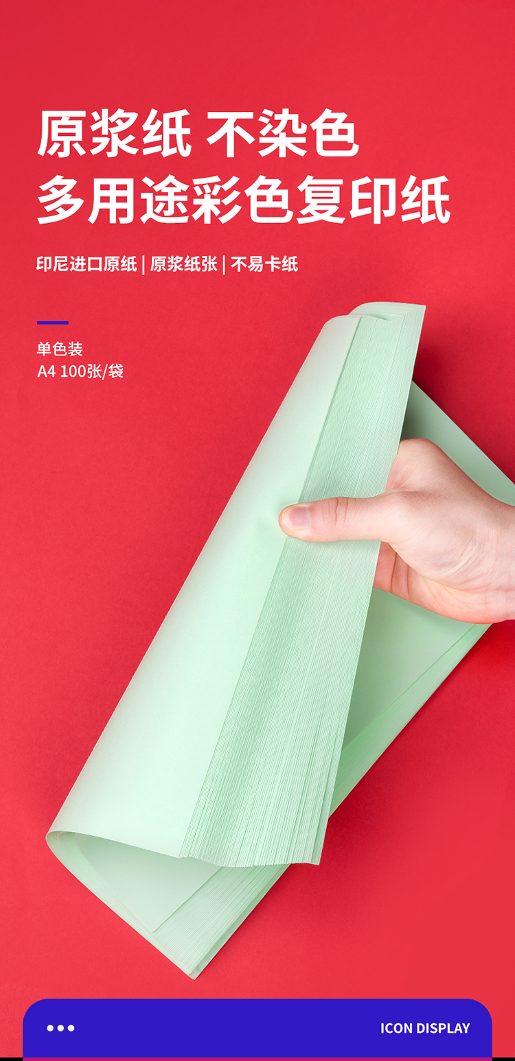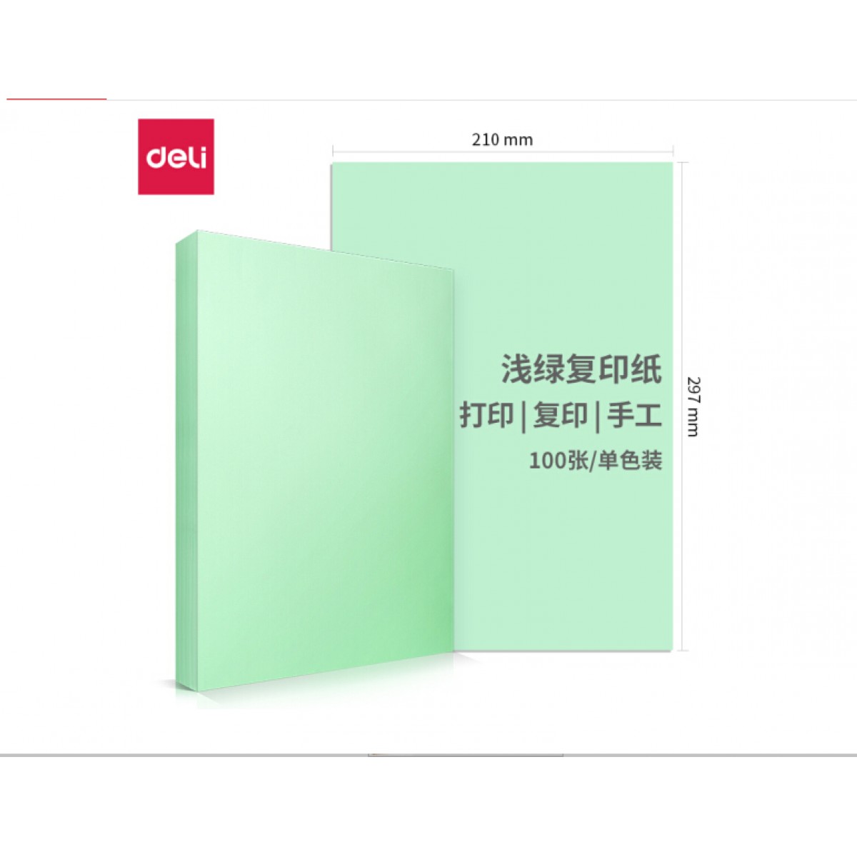 商品名称:得力7757彩色复印纸 A4 80g 100张/包 浅绿色 单位:包