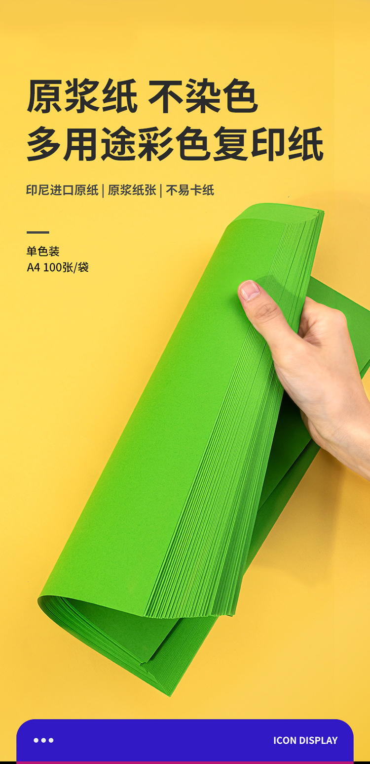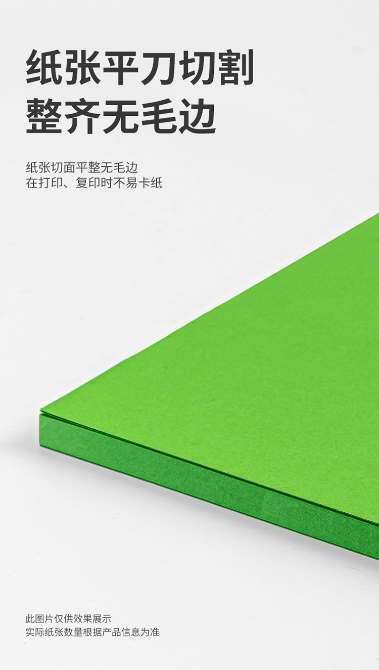 商品名称:得力7758彩色复印纸 A4 80g 100张/包 深绿色 单位:包