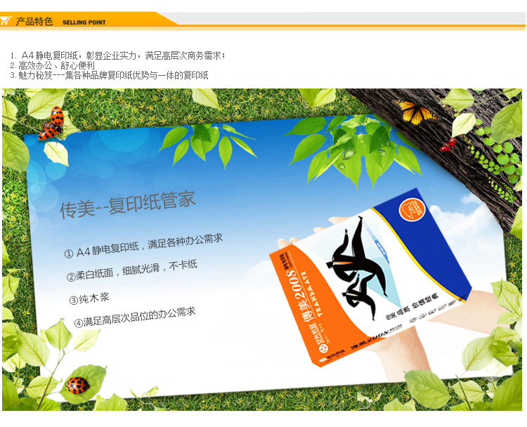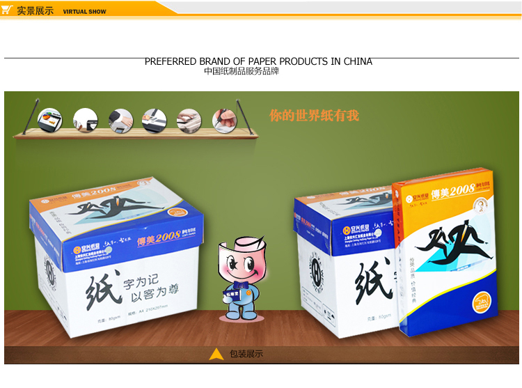 商品名称:传美2008复印纸 A4 80g 500张/包 10包/箱 单位:包