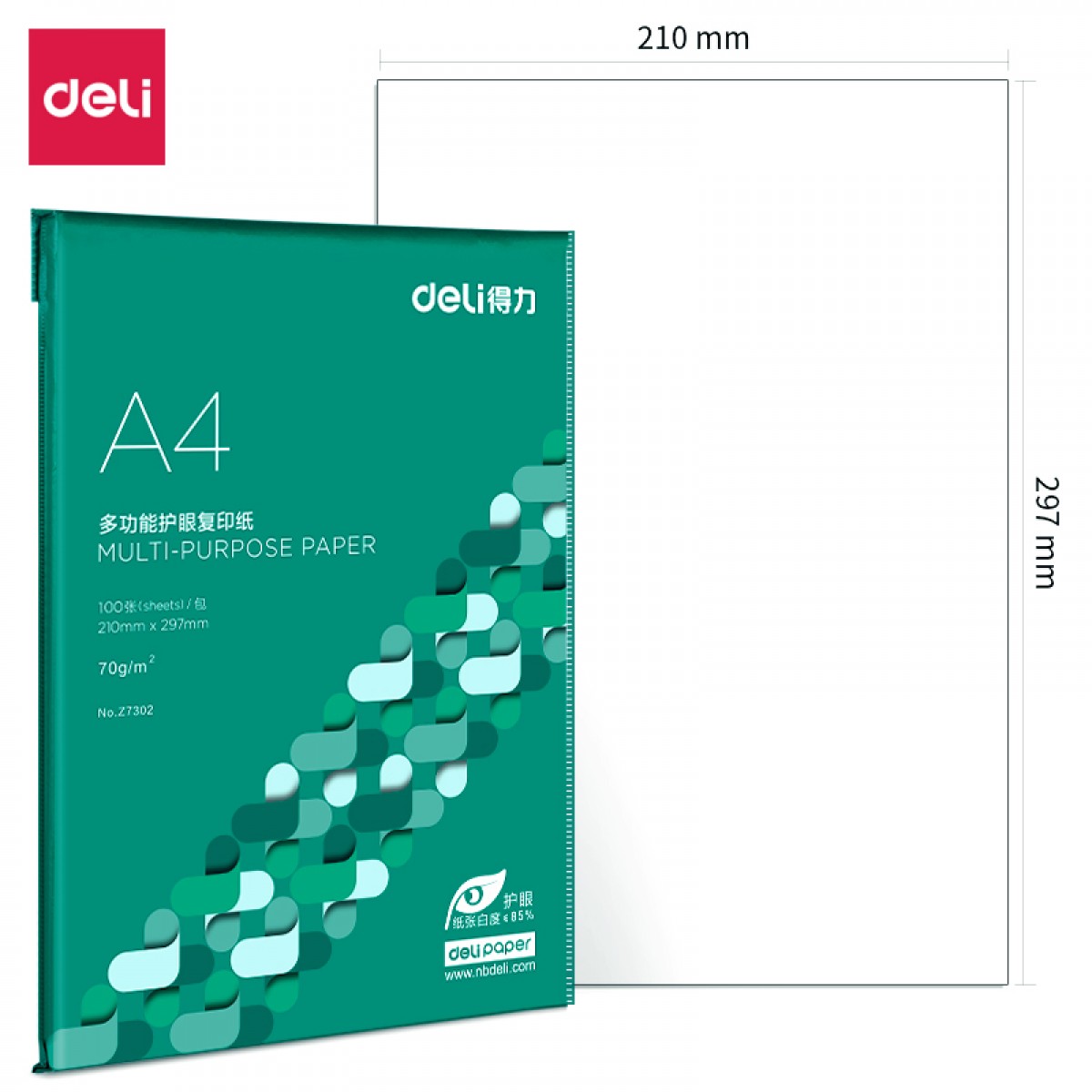 商品名称:得力Z7302多功能本色复印纸 A4 70g 100页/包 单位:包