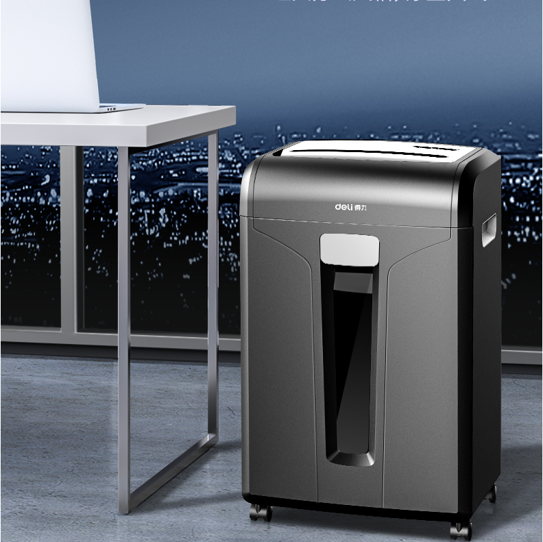 得力14401碎纸机 5级保密 单次可碎10张 连续碎纸30分钟 最大碎纸幅面A4 容量20L 可碎卡、光盘 黑色 单位:台
