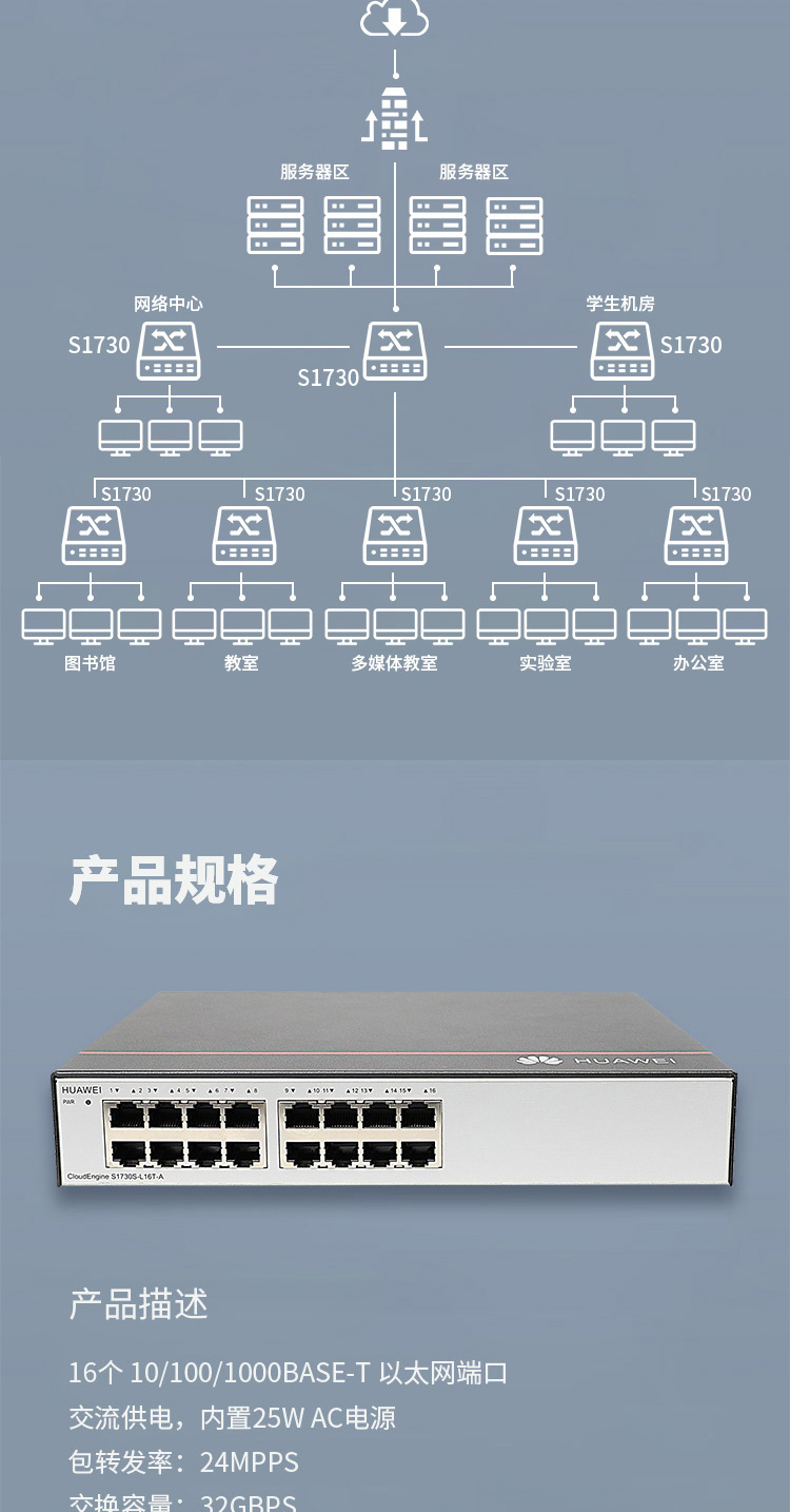 商品名称:华为S1730S-L16T-A交换机(单位:台)