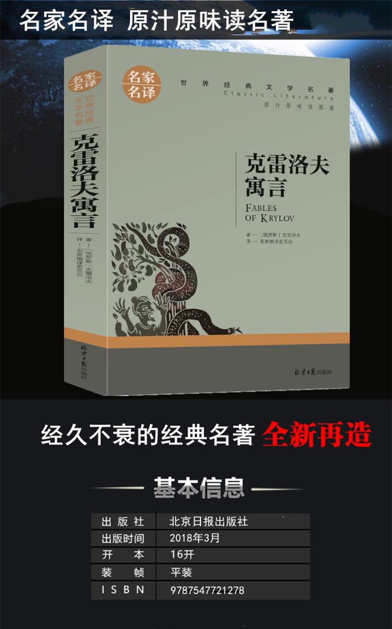《克雷洛夫寓言》经典世界名著文学 初中学生小学生课外阅读物