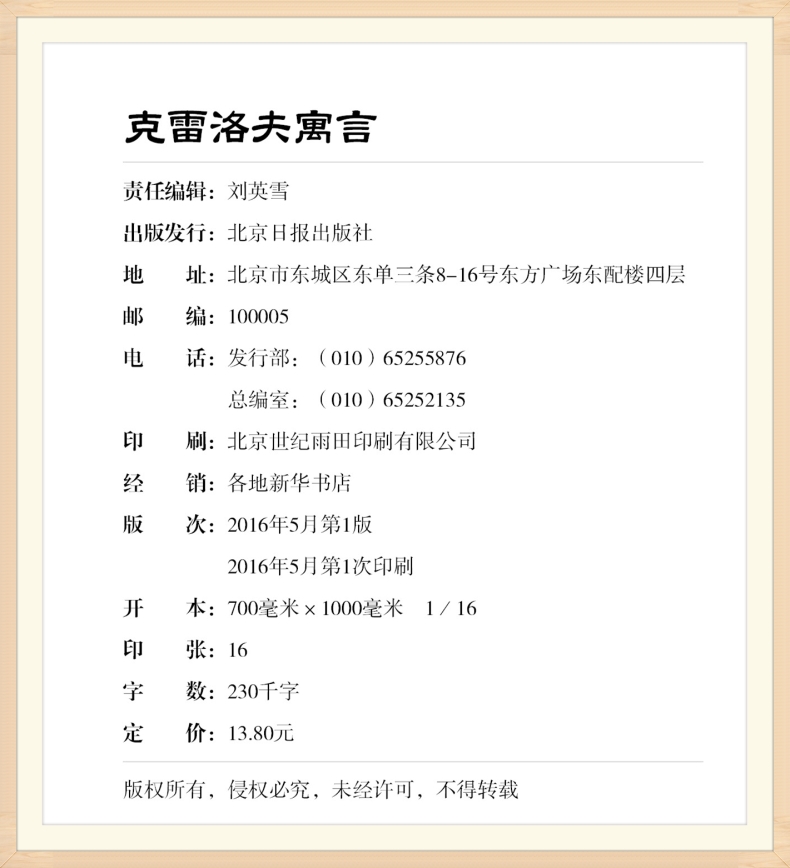 商品名称:《克雷洛夫寓言》儿童读物(单位:本)