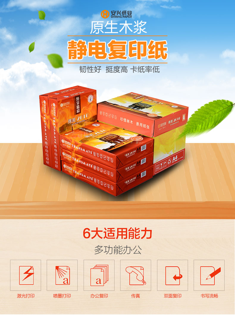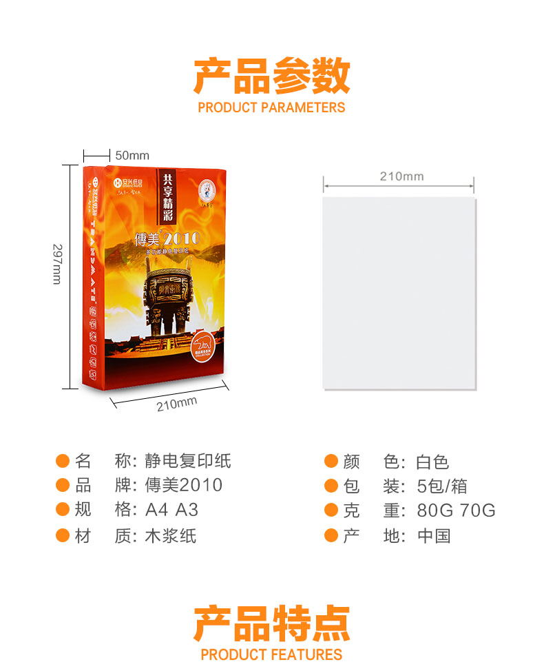 商品名称:传美2010复印纸 A3 70g 500张/包 5包/箱 单位:包