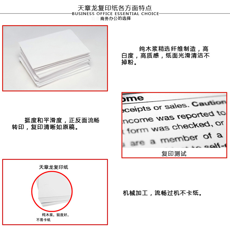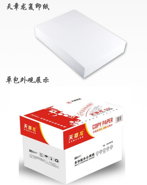 商品名称:天章龙复印纸 B4 80g 500张/包 5包/箱 单位:包