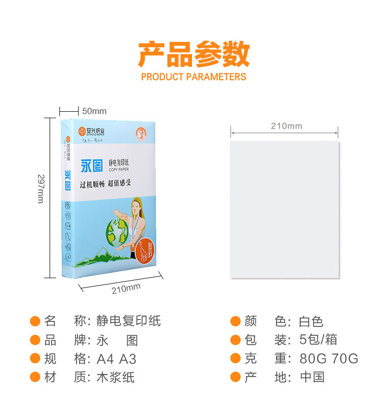 商品名称:蓝永图复印纸 A3 80g 500页/包(单位:包)