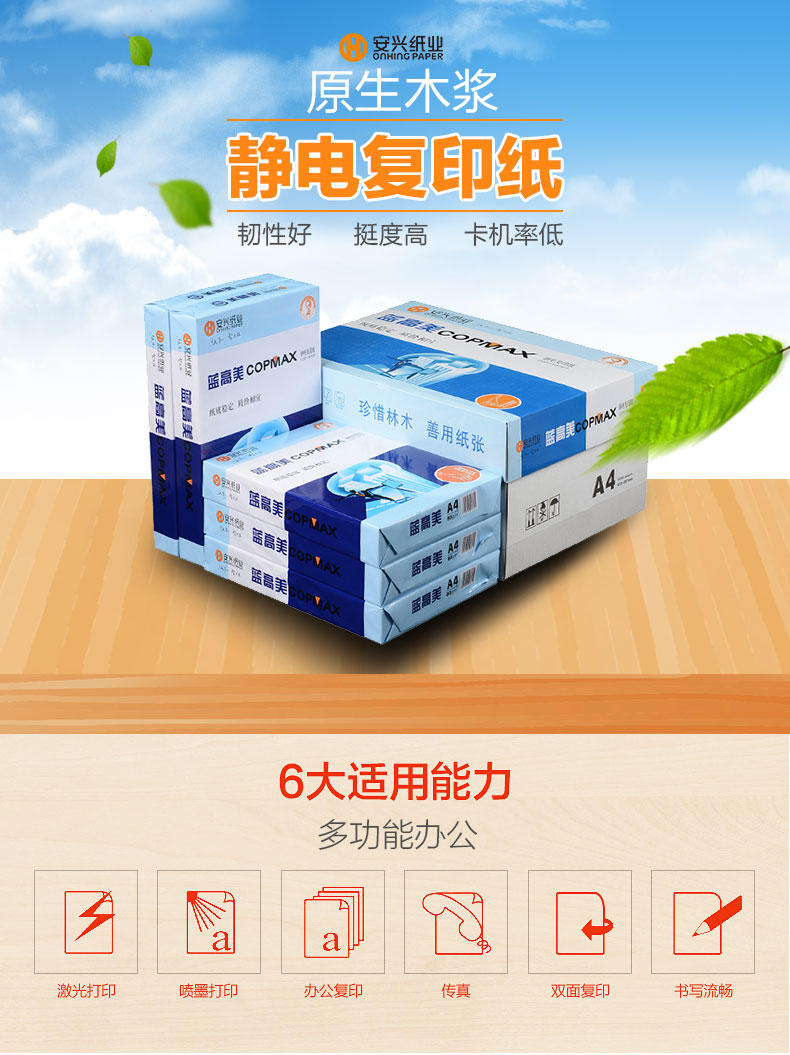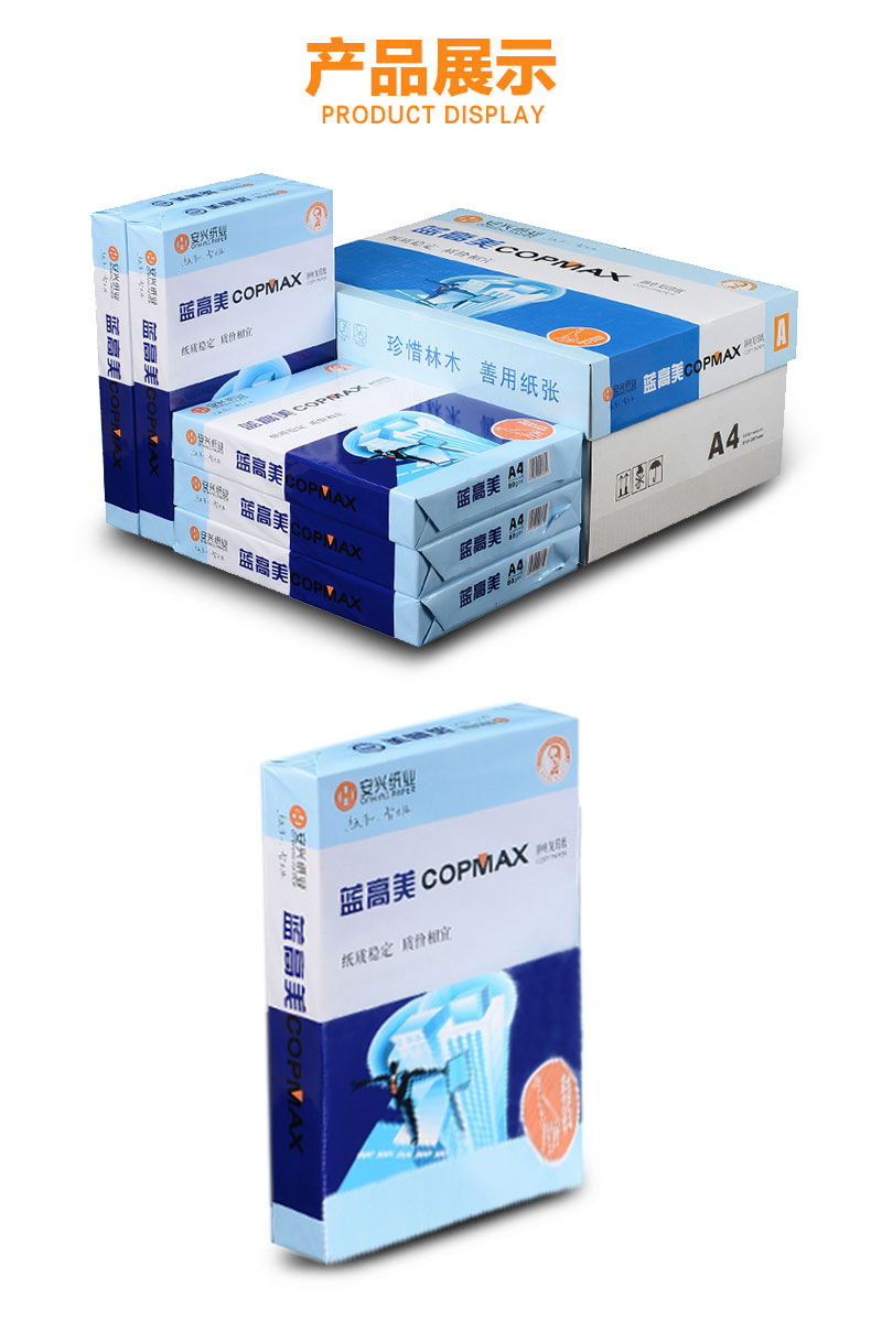 商品名称:蓝高美复印纸 A4 80g 500页/包 10包/箱 (单位:包)