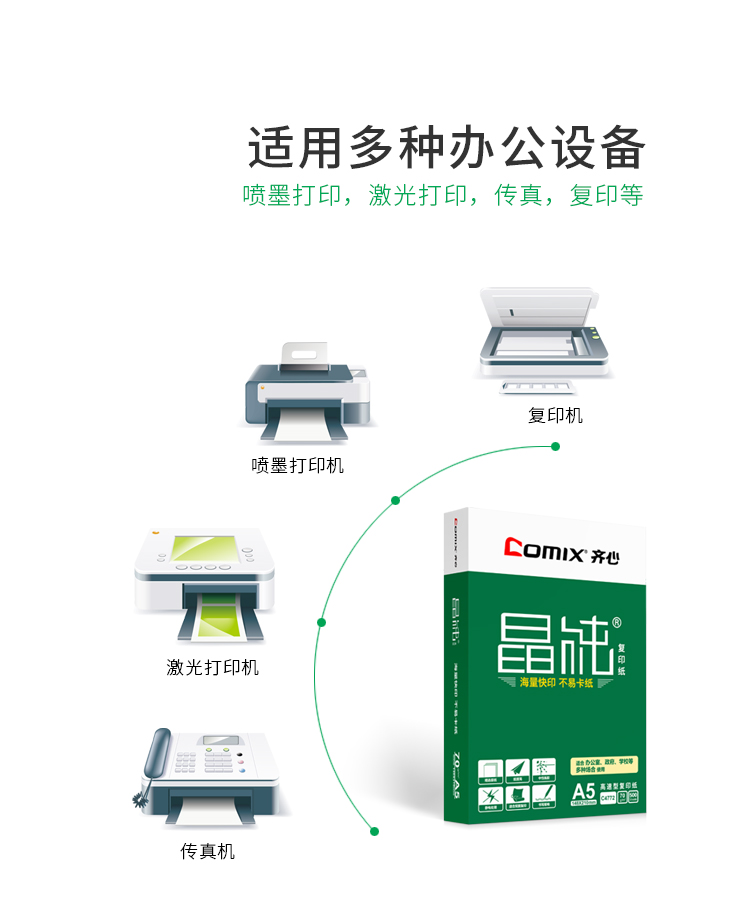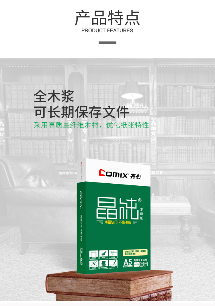 商品名称:齐心C4772晶纯复印纸 A5 70g 500张/包 10包/箱 单位:包