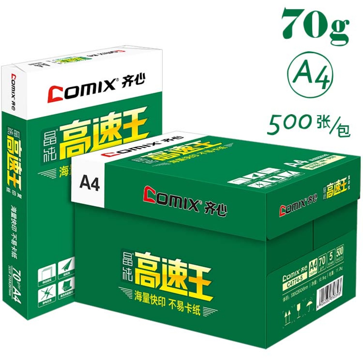 商品名称:齐心C4774-5晶纯高速王复印纸 A4 70g 500张/包 5包/箱 单位:箱