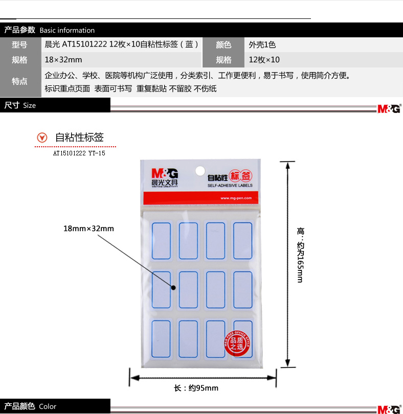 商品名称:晨光YT-15自粘性标签(蓝)18mm*32mm 12枚X10(单位:包)