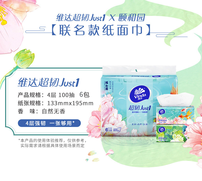 商品名称:维达V2808抽纸100抽4层超韧Just1 6包/提(单位:提)