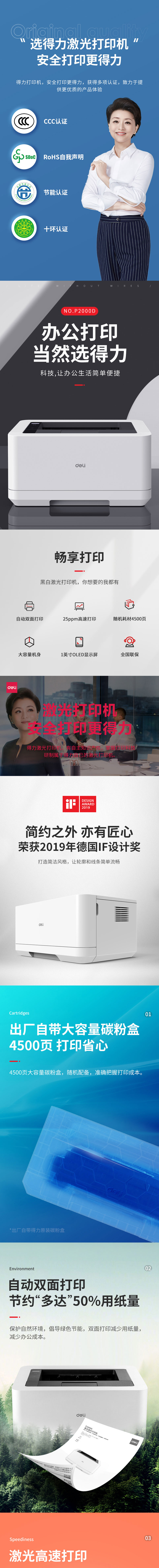 得力P2000D激光打印机 白色(单位:台)