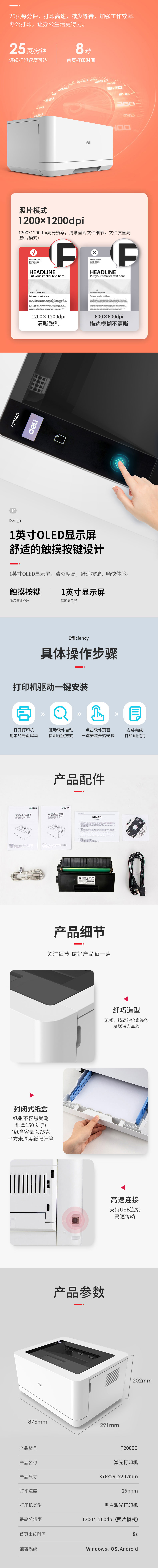 商品名称:得力P2000D激光打印机 白色(单位:台)