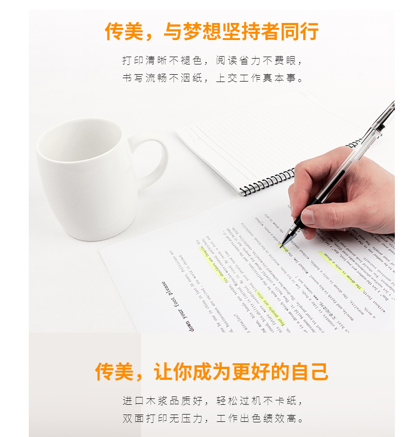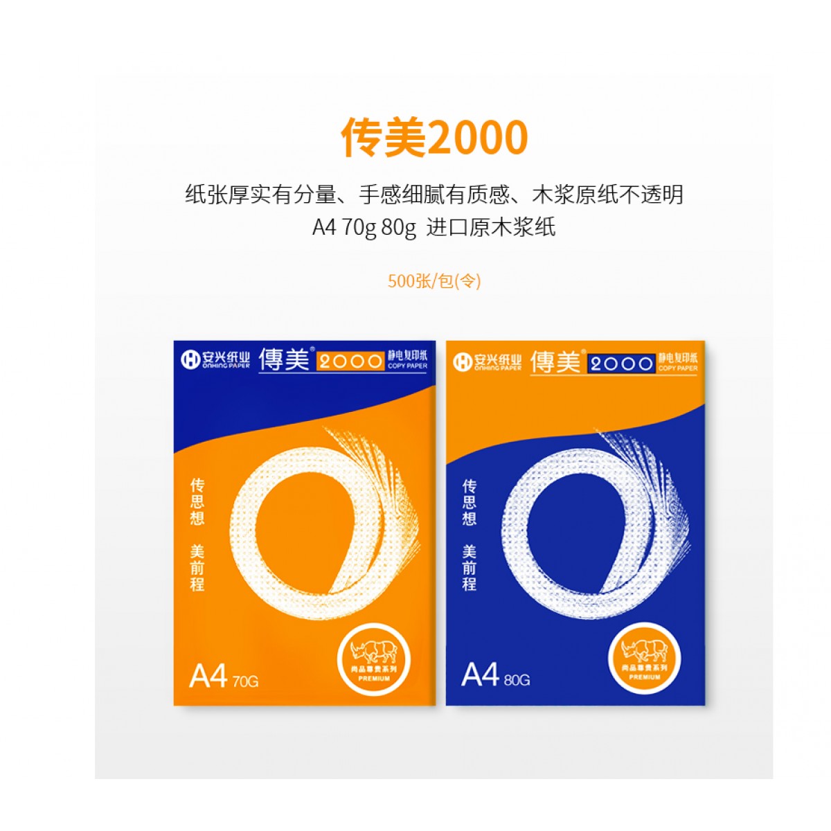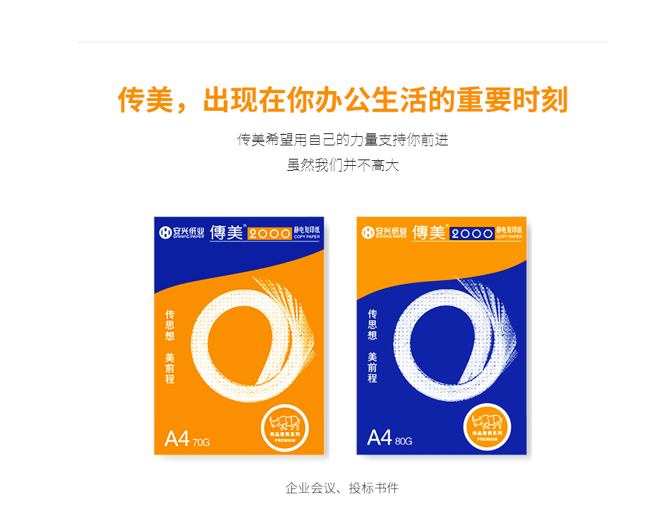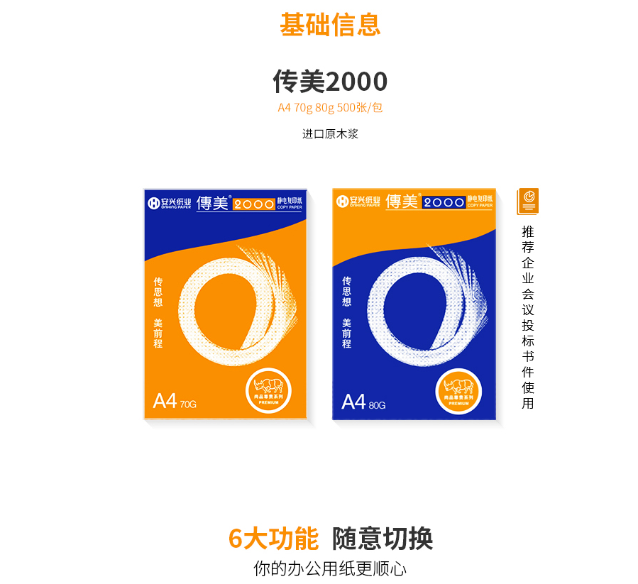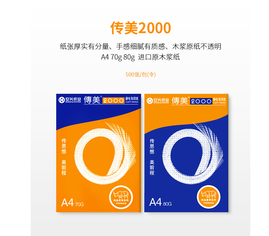 商品名称:传美2000复印纸 A4 80g 500张/包 5包/箱 单位:包