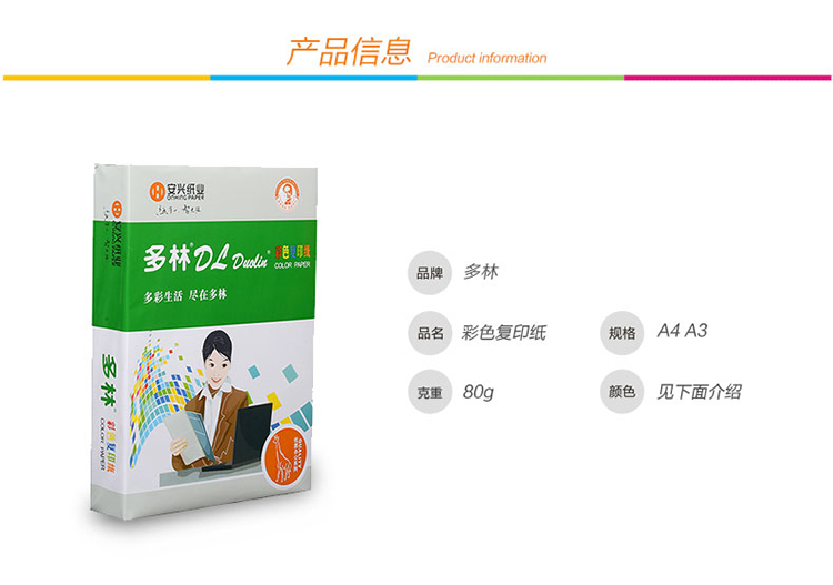 商品名称:多林彩色复印纸 A4 80g 500张/包 浅蓝 (单位:包)