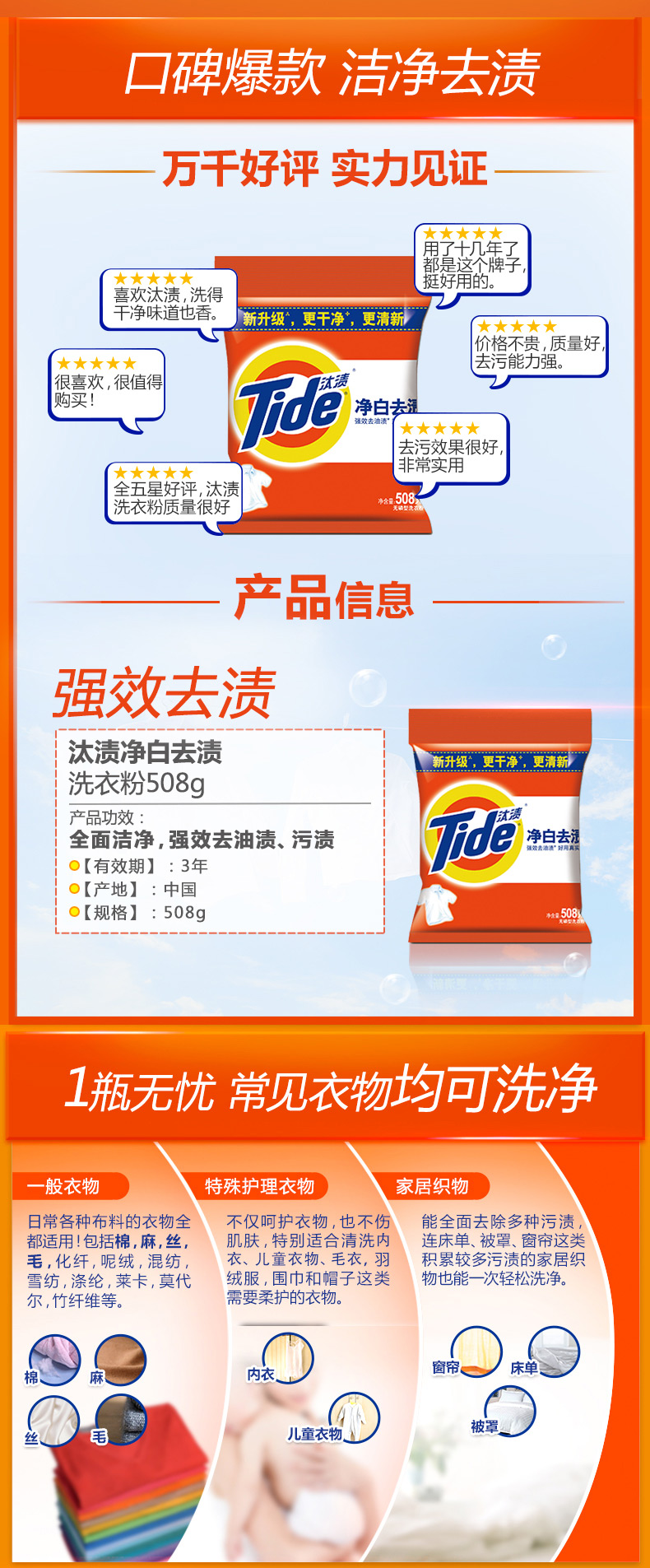 商品名称:汰渍洗衣粉 自然清香 508g/包 12包/袋 单位:包